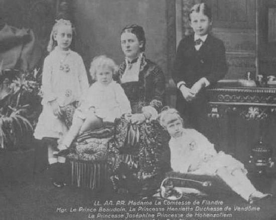 Philip married Marie Luise Hohenzollern-Signaringen was born (1845). Her father was Karl Anton Hohenzollern-Sigmaringen (1811- ). He rose to become the primeminister of Prussia. Her mother was Princess Josephine of Baden Zähringen (1813- ). Her brother was King Carol I of Romania and thus she was an aunt of his successor King Ferdinand of Romania. Marie was described as a 'lovely' girl. She was one of many potential wifes considered for Queen Victoria's youngest son, the fast living Prince of Wales (future Edward VII). The fact that she was Roman Catholic prevented her selection. Marie eventually married Prince Philippe, Count of Flanders, in Berlin (1867). Her title after marriage was Madame la Comtesse de Flandre. The Berlin site was chosen because she was Prussian princess. Philippe was the second son of King Leopold I of Belgium, but at the time did not have royal prospects. Princess Marie was an competent artist and even exhibiting her paintings at the Brussels Fair. She held a lively literary salon. It was for 40 years a notable gathering place of authors as well as a popular gatering for Brussels society.