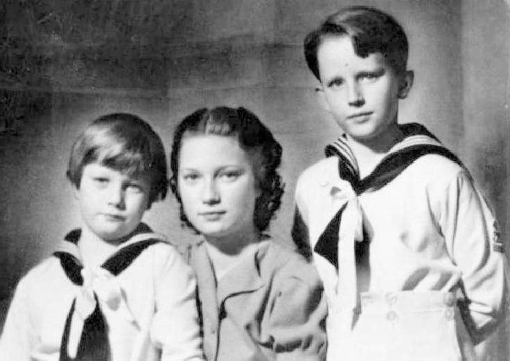 Baudouine like most royal children wore dresses, but only as an infant as the fashion of dressing young boys in dresses had largely disappeared by the 1930s, even for royalty. We note Baudouine wearing short pants outfits as a boy, often with white ankle socks. Some of his short pants outfits were worn with berets. He also wore long pants sailor suits. He did not wear the fancy lace-trimmed outfits his father and uncle war. He did wear short pants suits into his teen years, often with patterened socks. As a younger boy he wore strap shoes with many outfits. We are not sure who chose his clothing. His mother died in 1935 in a tragic accident. He was only about 5 years old at the time. His father remarried in 1941 when Baudouine was only about 11. I assume she then took a role in selecting the clothes of her stepsons. One photograph of Prince Baudouin at about 8 or 9 years of age wearing a long pants sailor suit and strap shoes.