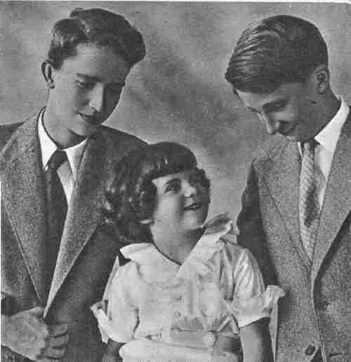 Leopold married Marie Lilianne Baels, later created Princess de Rethy, in a religious ceremony on September 11, 1941, during the German occupation. The civil ceremony took place on December 6, 1941 at Laeken Castle. Her father was Henri Baels and her mother was Anne Marie De Visscher. This marriage was kept a secret and was not popular in Belgium when it was announced. His wife was a commoner and there were unsubstantiated rumors that she was pro-NAZI. We note that there was no legal action taken against her after the War and some believe that the rumors were absurd. Probably the love of the Belgian peple toward King Leopold's first wife Queen Astrid was a factor. Other Belgians probably thought that hile the Belgian people suffered under occupation, it was no time for the King to marry. King Leopold had three children with Princess Lilianne, incliding Alexander seen here with his older brothers (figure 6).