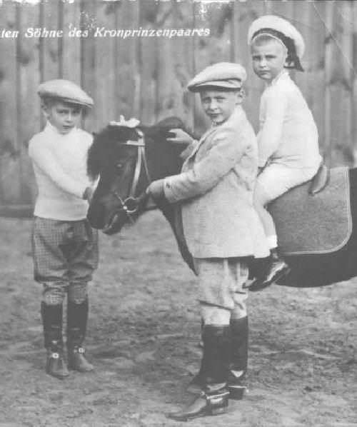 We note images of the boys wearing flat caps when worgking with horses--at least the older boys. Unlike images showing all the boys dressed alike, images of the older boys in flat caps sometimes show the younger boys still wearing sailor caps. This may have been a style seen suitable for riding when for other occassiond the boys still wore sailor caps. This we are not sure about. A photograph after the Wars show them wearing flat caps with suits and not neceessarily for riding.