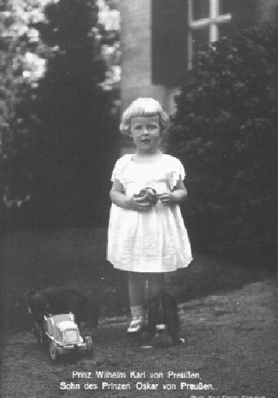 We have no information on his childhood at this time. As he was born January 30, 1922 at Potsdam, Germany. It was after his grandfather had abdigated and the Hohenzollern's were no longer the German ruling family. His childhood was thus very different than his father's childhood. Almost surely as he was 11 years old when the NAZIs seized power and his father was an ardent NAZI, he must have joined the Hitler Youth.