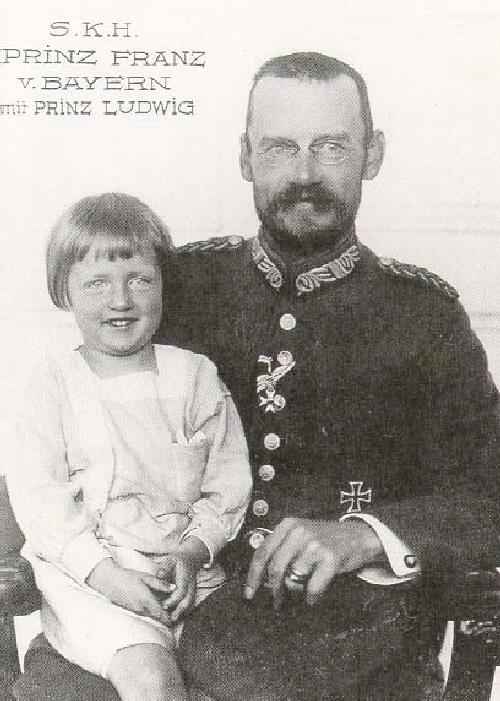 Prince Franz of Bavaria was born at Schloss Leutstetten in Starnberg, Bavaria (1875). Franz was King Ludwig III's third son. His mother was Princess/Archduchess Maria Theresa of Austria-Este (1849- ). Austria-Este was an Italian-based cadet offshoot of the main Hapsburg family. We know nothoing about his childhood at this time. He went into the Imperial Army. He commanded the commander of the 2. Infanterie-Regiments König. Just before the outbreak of World War I, Prince Franz was given command of the 3. bayerische Infanteriebrigade. He compiled an impressive record during the fighting on the Western Front. It was renamed the 4. Infanterie-Brigade. Prince Franz commanded his brigade in the victorious battles of Fort Douaumont, Passchendaele and Kemmelberg on the Western Front. He received the Knight's Cross of the Military Order of Max Joseph (May 25, 1916). He was next given command of the entire 4. Bayerische Infanterie-Division (October 28, 1916). Prince Franz was awarded the Commander's Cross of the Military Order of Max Joseph and the prestigious Pour le Mérite, Prussia's highest military decoration (May 16, 1918).