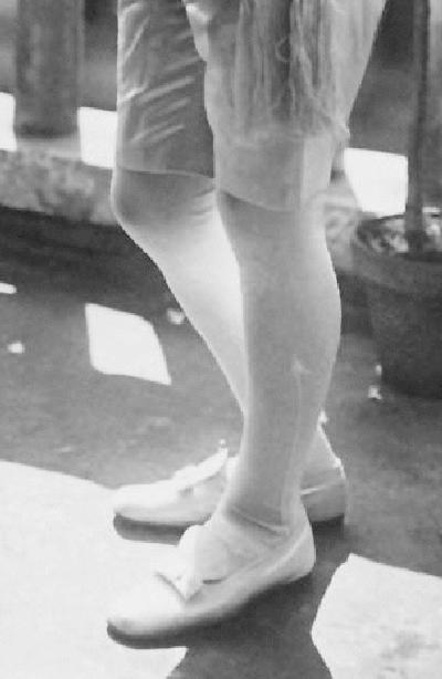 Prince Albrecht as a younger boy wore short white socks with dresses or short kneepants outfits. As an older boy he commonly wore long stockings with his satin kneepants outfits. The long stockings look white, but they could have been pastel colors as well matching the color of the suits. We do not notice him wearing dark longstockings with dark suits like his older brother, but we do not have any images after about 1915. The choice of long stockings appears to be a matter if age and formaity of dress rather than a seasonal matter. Albrecht also wore kneesocks. We note both dark and lighter-colored kneesocks with the Bavarian folk lederhosen outfits. As he wore long pants with his sailor suits we do not know what kind of hosiery was involved.