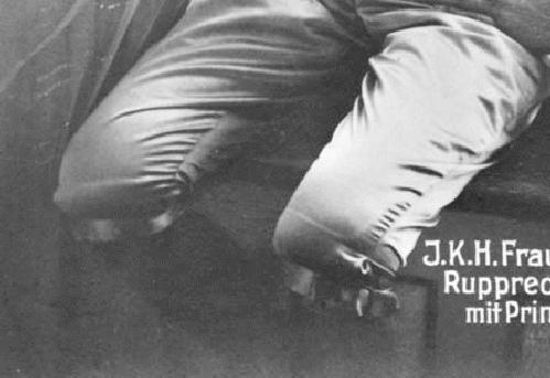 We note that Luitpld wears his hair cut short with these kniclers suits. He may have had his hair cut at the same tome that his kneepants were replaced with knickers.