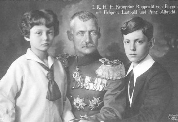 Prince Rupprecht. Generally it was the mother's responsibility to care for the younger children or at least supervise their care. The father became more important after the boys reached their teen years. Our information, however, is very limited and is based only on the available portraits at this time. Their father unfortunately never had a chance to develop a relationship with Luitpold asa young man as he died soon after this portrait was taken. He looks very healthy here so it must have been a tragic accident.