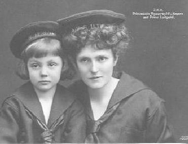 Crown Princess Rupprecht married Maria Gabriele (1878-1912) of Bavaria in 1900 who became, as a result, a duchess. Her father was Karl Theodor "Gackl" (1839). Karl Theodor was a son of King Maximilian I Joseph, Bavaria's first king. Her mother was Maria Josepha of Portugal--de Bragança (1857). We know little about her childhood and early life. His sister in law was thus the Princess Elizabeth. While we have little information about her, available images suggest that she was a loving mother. Unfortunately, two of her children died as infants. Maria Gabriele herself died at the young age of about 36 in Sorrento. Tragically her eldest son Luitpod died only 2 years later.