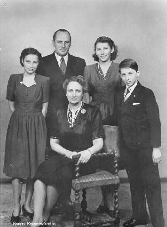 The Crown Orince and Princess Martha had three children, a son and two daughters. Princess Ragnhild Alexandra was born in 1930. Princess Astrid Maud Ingeborg was born in 1932. Their younger brother Harald who would become King V was born in 1937. The royal family was disrupted by World War II when NAZI Germany invaded (1940), but were reunited and returned to Norway (1945).