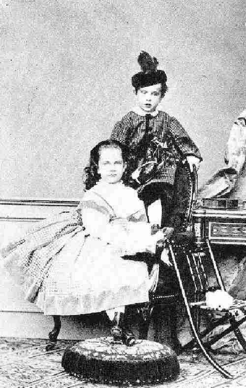 We have little information about Princess Gisela. We do note several photographs taken with her and Prince Rudolf when they were quite young. A good example is the image where the two were photographed with their father (figure 1). Their mother was clearly not ready for motherhood when she and Rudolf were born early in the marriage. Giesela, like her mother, also married young at only 15 years of age to Prince Leopold of Bavaria, a son of Prince Regent Leopold of Bavaria. This meant that Gissela's mother, Emperess Elizabeth, at the age of only 36 years became a grandmother for the first time--long before she wished to be.