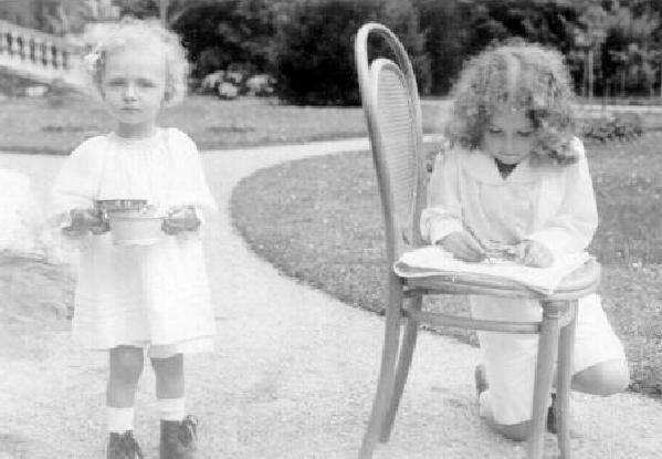 Figure 1.--I am not positive, but believe this is Otto and Abelard about 1917. Notice Otto's long uncurled hair and his sister's short hair. Perhaps it has not yet grown out, bur even when older Otto had longer hair. |