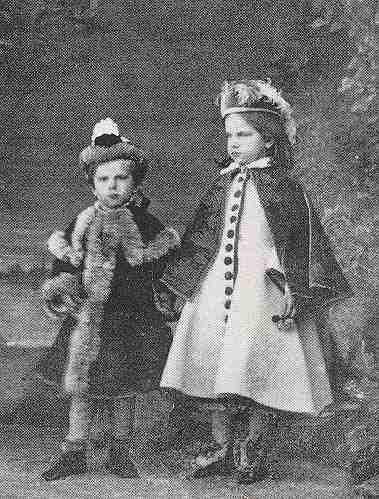 We have one image of fashionable coats worn by Rudolf and his sister Gisela. They were quite fashionble coats worn with equally fashionable hats. Of course as Austria is mounatenous, winters are quite cold with a lot of snow. Thus coats and other cold weather clothes were quite important. Rudolf wears a coat with fur trim. Gisela wears a cape over her coat.