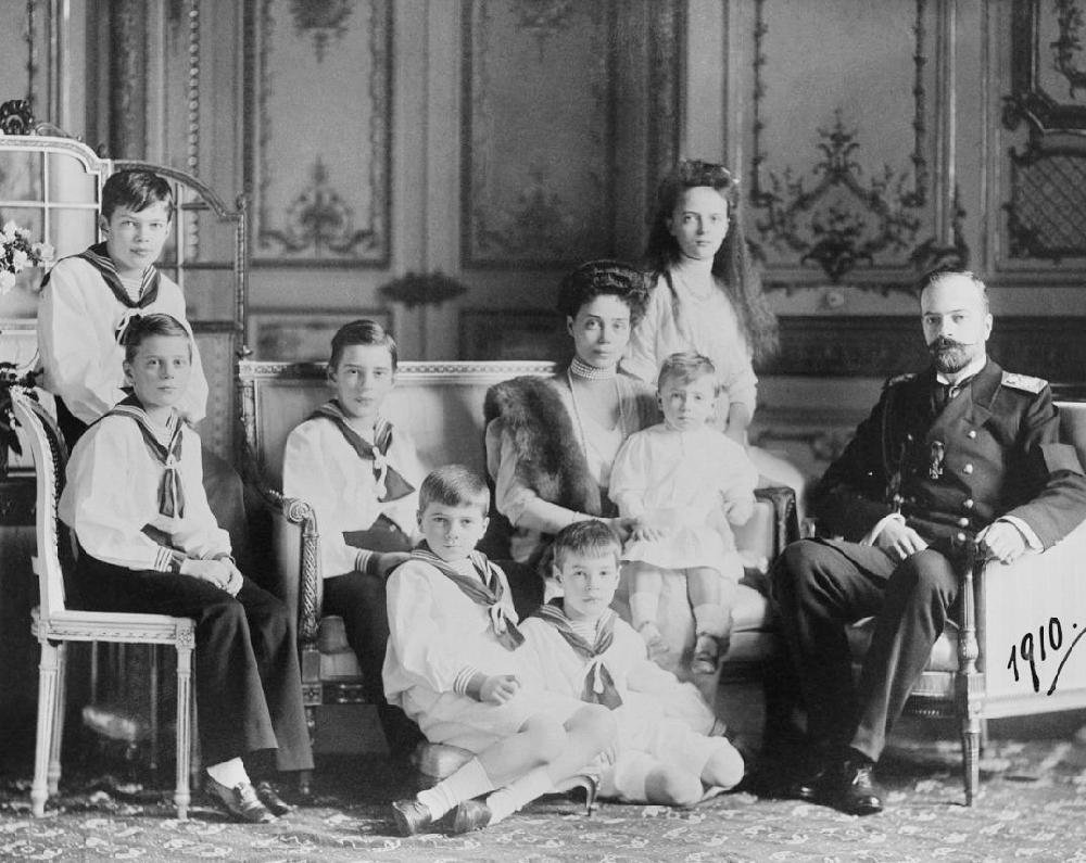 Grand Duchess Xenia was the fourth child and first daughter of Alexander III and Maria Fyodorovna. She was born at the Anichkov Palace in St Petersburg (1875). The Tsar wrote to his father-in-law, King Christian IX of Denmark, "The infant was born at exactly four in the morning, on the day of the celebration of the Annunciation. Nicky and George are delighted with their younger sister. It was a great delight for them to be present at her first bath." Growing up with brothers, Xenia was reportedly a tomboy and rather shy. Like her siblings, Xenia was raised in a rather simple manner given her status. She slept in a cot, was woken 6:00 AM, took cold baths, ate simple, plain meals, and her rooms were furnished with basic furniture--not like what one would imagine for a princess. Cold baths in Russian do not sound all that princess like. As with her siblings, Xenia was educated by private tutors. She learned English, French, and German but unlike her elder brothers, she never learned to speak Danish, her mother's native language. She developed a talent for drawing and also learned gymnastics, dancing, and how to play the piano. Like quite a number of royal children, Xenia kept a diary which she updated daily. Nicholas and George's English tutor was a favorite with the Imperial children. He taught them how to fish and play games. Xenia married her third cousin, Grand Duke Alexander Mikhailovich (1866-1933), at Peterhof Palace (1894). He was a gransdson of Nicholas I . He was known as Sandro among the family. As a result of the marriage he was a brother-in-law to the Tsar. He became a close advisor tp Nicholas. They had seven children, mostly boys who were commonly dressed in sailor suits. This was common with Russian and German royalty. Xenia was the mother-in-law of Felix Yusupov and a cousin of Grand Duke Dmitri Pavlovich of Russia who plotted the murder of Grigori Rasputin. During the Russian Civil War, the Bolshevilks began killing Romanovs, including the royal family. Grand Duchesses Xenia and Olga were very lucky Romanovs. They were among the surviving Romanovs to escape from Russia with their mother and mist most of the childrem on board the British battleship HMS Marlborough (April 1919). They brought with them jewels which helped finance their life in exile. They left from Yalta in the Crimea. Her husband had already reached safety in the West. Grand Duchess Xenia died at Wilderness House on the grounds of Hampton Court Palace in England (1960).