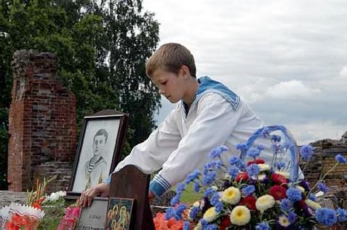 Figure 1.--Here is a Russian boy dressed like Alexei at a shrine to Tsarivitch in Russia. This is an example showing how popular Alexei has become. |