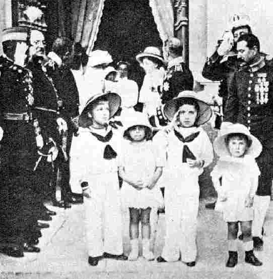 The boys commonly wore wide-brimmed sailor hats when they were younger and with their sailor suits. We have noticed the children wearing both regular wide-brimed hats and hats with turned down brims along with their white sailor suits. They seem to always wear the more formal hats rather than caps commonly worn by the princes in other country's who commonly worn the same headwear won by sailors in the navy. The Spanish princes seem to have worn children's hats rather than the hats and caps worn by Spanish sailors.