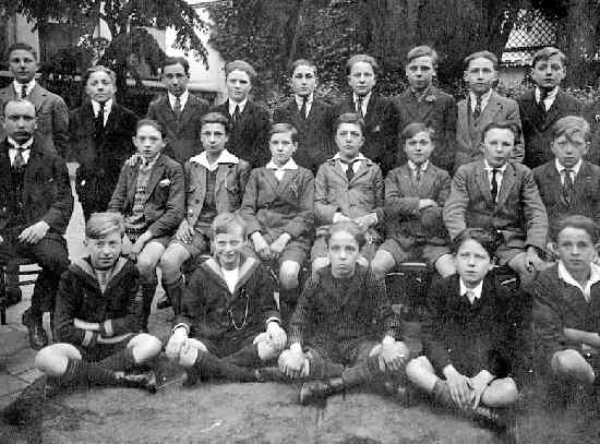 All of the boys wear short pants suits. There is clearly no style required, but every boy appears to wear short pants suits. Even the older boy behind the teacher seems to be wearing a short lants suit, at least you can seen his kneesocks. As all of the boys seem to be wearing short pants suiys of some description, we wonder if there is a possible school dress code. Ties were not required, but the photograph suggests that short pants suits of some description may have been required. Now it may be just that shorts pants were very common. We are not, however, convinced of this. While short pants were common in Belgium for younger teens in the 1920s, they were not exclusively worn. It seems like that if they were not rquired, that a few of these boys would have turned up in long pants or knicker suits.