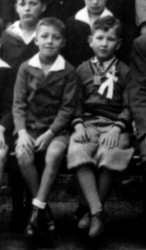 School uniforms were not common in Belgium and as a result shoolwear is generally a reflection of ordinary boys' clothes. Some private Catholic schools did require uniforms. We see some boys wearing unidorms with militsry-styled touches. This included peaked cadet caps. We do not know much about these uniforms. They look somewhat like similar uniforms we have seen in France. This was niot a national style. We suspect they may have been theuniforms at private secondary schools, probably Catholic schools. They were generally quite simple uniforms, sweaters, white shirt, short pants and kneesocks. Elaborate school uniforms as worn in Britain were not common,
