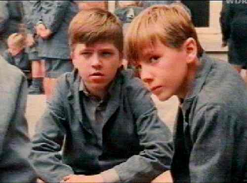 Belgian films look remarably similar to French ones. I do not know of particularly classic Belgian films, but HBC correspondents have provided some sample images. Belgians boys are often shown wearing short pants and until the 1950s schoolboys are commonly seen in smocks. Berets are also worn, presumably in the French speaking areas. Modern movies