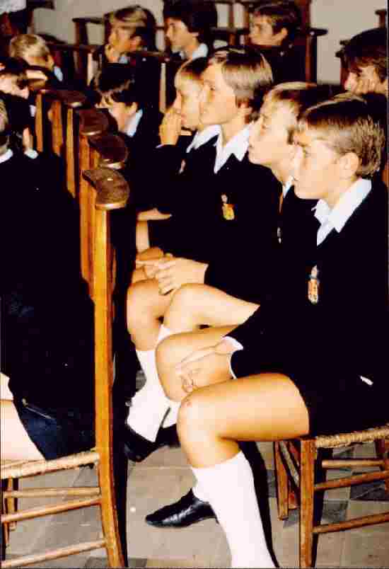 The Belgian Catholic schools are not really private schools in the Anglo-American sense of being entirely apartfrom the state-controlled system. they are very largely paid for by the State though there may be some small feescharged to the parents. Most of the curriculum and what now is pretty much controlled by the State like all theother schools. It's just that they have a strong religious dimension (with priests often providing thepastoral/counselling side of school life, which would be unthinkable in the ordinary state schools). The Catholic schools also had muchstricter discipline standards. In the past, te Catholic schools also required uniforms while the state schools did not, other than smocks in elementary schools. Currently the Catholic schools have generally relacced uniform standards, especially reqquiring short pants. Both Belgium and France are of course are 98 percent nominally Roman Catholic, but the question of control of education by the Church has been a major political issue in the past and was largely resolved in the 1950s and 1960s by the present compromise under which the church schools are largely funded by government. There is a partial parallel with the so-called "voluntary aided" sector in the United Kingdom, like the grammar schools many academically capable British boys once attended. Some of these schools still exist, but the "11+ exams" to select the most capable students. These schools are now entirely funded by the local education authority but retainiedng some degree of autonomyover its internal affairs (but in that case an ancient Anglican foundation).