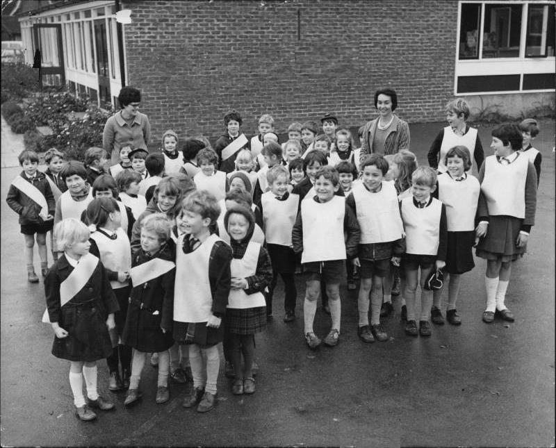 One way to help keep kids safe when walking to school is to wear bright collared clothing. We do not see this commonly in England. Quite a number of schools have unforms, including most private schools and secondary schools. Primary schools vary. Some have uniforms as well. But none of the unifrms are chosen with safety in mind. Grey and black feature prominently. This is a real issue in Britain because of its northerly lattitude. This is far to the north of the United States, except Alaska. This means that during the school year, it gets darker much earlier in England than in America. So this is a real concern. We notice one school, the Trottiscliffe Church of England Primary School in Maidstone, Kent, adopting relective items. And Kent is in the in the south of England. As you go further north it gets darker earlir and earlier. The reflective items do not seem to have caught on. We do not see children wearing reflective or other protective clothing.