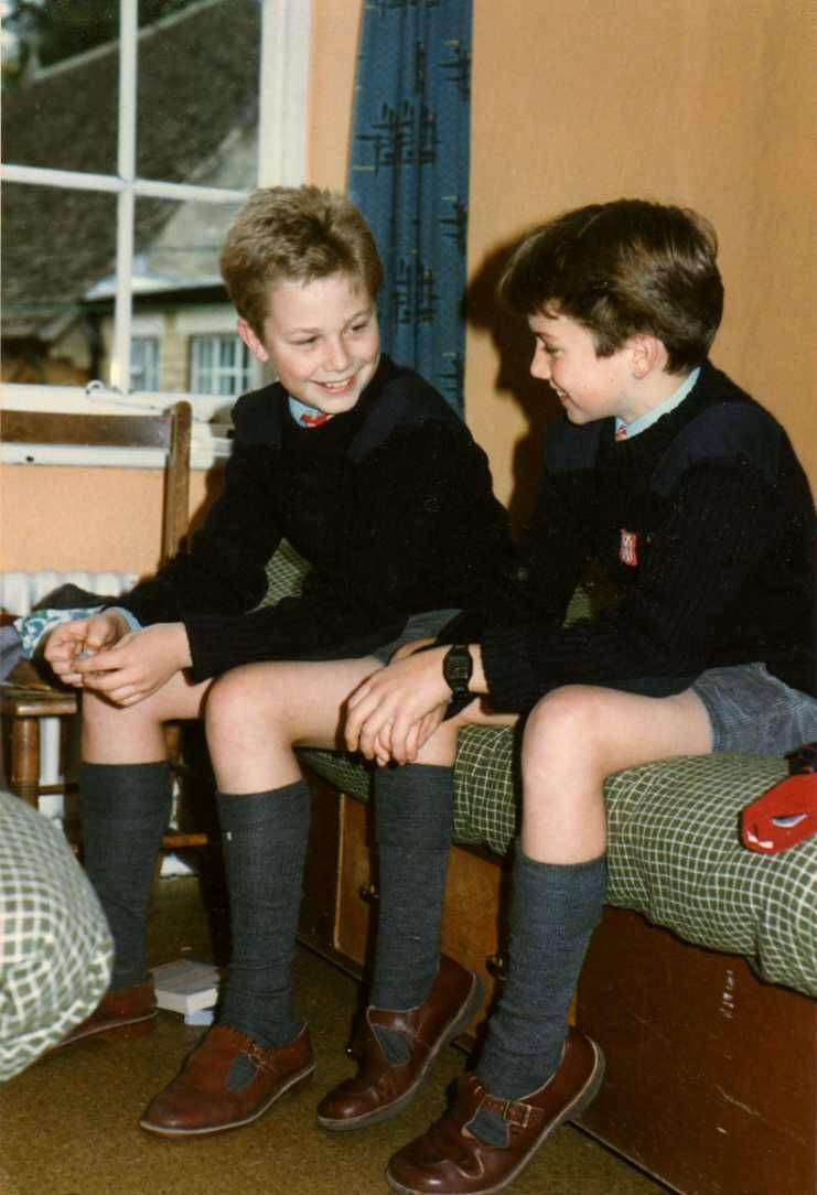 We note a range of different footwear types worn at English schools. These sandals became so common at primary school that they became referred to as school scandals. Various types of sandals were worn, but by far the most common were the close-toe "T" strap style with a single side strap. Some younger boys or girls wore redish-brown or blue sandals or double strap sandals. Clark's school sandals were a standard. Some private schools required them. They were not common at secondary schools, although until the 1970s some of the younger boys did wear them. Sandals are still widely worn in primary schools, but styles have changed. The center strap for boys' sandals is now commonly quite thick. Plimsols were worn for gym, but some primary schools allowed children to wear trendy smeakers (trainers). Some primary children wore wellies in wet weather. Many schools banned boots as foot wear when they became popular in the 1970s.