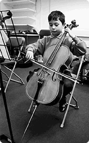 school to avoid the chafing of bare thighs when the cello was between his legs. Violinists often put a cloth between the violin and their chins for the same reason. So the choice of tights could have been a matter of practicality. But it is still quite unusual in England."