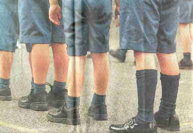 staff generally acceed to this 'fashion statement' made by the boys; in my day, teachers would have reprimanded us for breach of uniform regulations. In the autumn because all the boys are wearing jumpers underneath their blazers and all the girls are wearing black tights even though the sun is shining. The boys, again by wearing their knee socks round their ankles, are making no effort to dress for the cold weather. On this basis surely it would be sensible for manufacturers to produce grey ANKLE socks, as well as grey KNEE socks, both with turnover tops containing bands in the school colours. Perhaps I ammissing the point entirely through not being able to 'read' the juvenile minds of kids today as to what is 'cool'? "