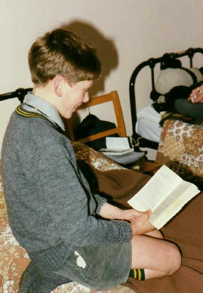 Figure 1.--Here we see the boys wearing their jumpers even inside in their dormitories. Notice the color trim. |