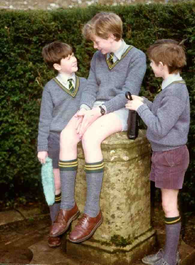We note jumpers with a variety of color detailing or trim. Some schools insist the children wear the sweaters with the required detailing. This is normally not a problem, as most parents are supportive of the uniform regulations. The color detailing added a bit of color to otherwise rather drab jumpers. Most commonly this involved two colors. Often one was a bright colot like yellow, but there were countless combinations. Sometimes only one color was used. While grey was the most common color jumper, they were done in severalmother colors which often also had color detailing. Jumpers might have color detailing at the collar, wrist cuffs, or waist band. The color detailing was most common at the collar, mostly "V" collar jumpers. The "V" collar was of course designed to show the school tie. Some also had the school leaders or symbol. Other types of sweaters than the "V" collar were not commonly detailed. The detailing would be in the school colors. The detailing often matched the ties and kneesock cuffs. And the color was commonly coordinated with caps and blazers or sometines scarves for winter wear.