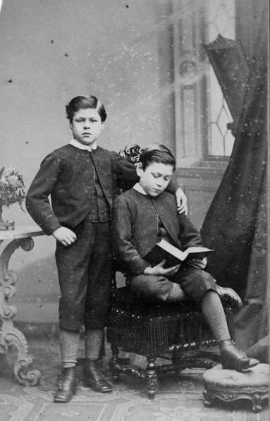 English boys commonly wore suits to school. Suit styles varied over time. English boys commonly wore suits to school in the 19th century. The suits followed the basic suit styles popular at the time. This included both school uniforms and regular suits worn at schools. We do not have much information on the early-19th century. We know that uniforms existed at some schools like Eton which had especially designed suits. Not all private schools, however, had required uniforms. And the state system was still very limited in England, let alone requiring uniforms. Thanks to photography we know much more about the mid-19th century and a great deal about later periods. We see boys at mid-century wearing cut-away jsackets, commonly with vests (waistcoats). Therse seem to be suits worn to school more than school uniforms. School uniforms at private schools became increasingly common in the late-19th century. We see mostly single-breasted suits. Norfolk styling was popular in the late-19th century. The boys wore knee pants, knickers, and long pants.
