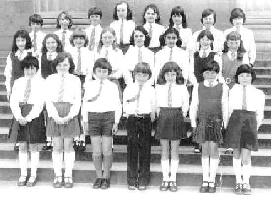 We have not noted boys wearing their school ties with either clips or pins. As far as we know these devices were not used. I am not sure why. As a result ties were generally not secured in any way. Sometimes boys' ties can be seen flapping in the breeze. At thes English primary school, both boys and girls wore neck ties. Most tucked their ties into their waistbands. Not all did no as at least two boys have ties that can be seen flapping in the wind. Curiously one of those boys has tucked the back tail of this tie in his waistband, but not the front (figure 1). Some schools disapproved of this, but it was very common at schools.