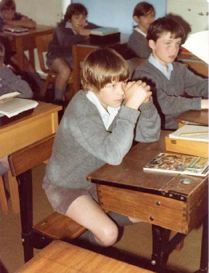Boarding may have been a factor here. At boarding schools the regulations over hygeine and hair washing were probably stricter fot the reason of them being together more often and therefore hairlength would come into that. Prep schools used to be very strict about hair cuts. They did not normally require short back and sites cuts, but the styles were definitely on the short side. Attitdes about hair changed considerably and the prep schools for the most part decided go go with the flow. We note a range of different styles in the 1980s. Most schools allowed the children considerable lattitude here as long as the hair was kept reasobanly near and off the collar. Here schools varied. Some schools continued to be very strict about hair styles. Some schools have a barber come to school on a regular basis. Other schools let the parents handel hair cutting. This was especially true of day boys. Headmasters might, however, have boys whose hair is demmed beyond the pale visit a local barber.