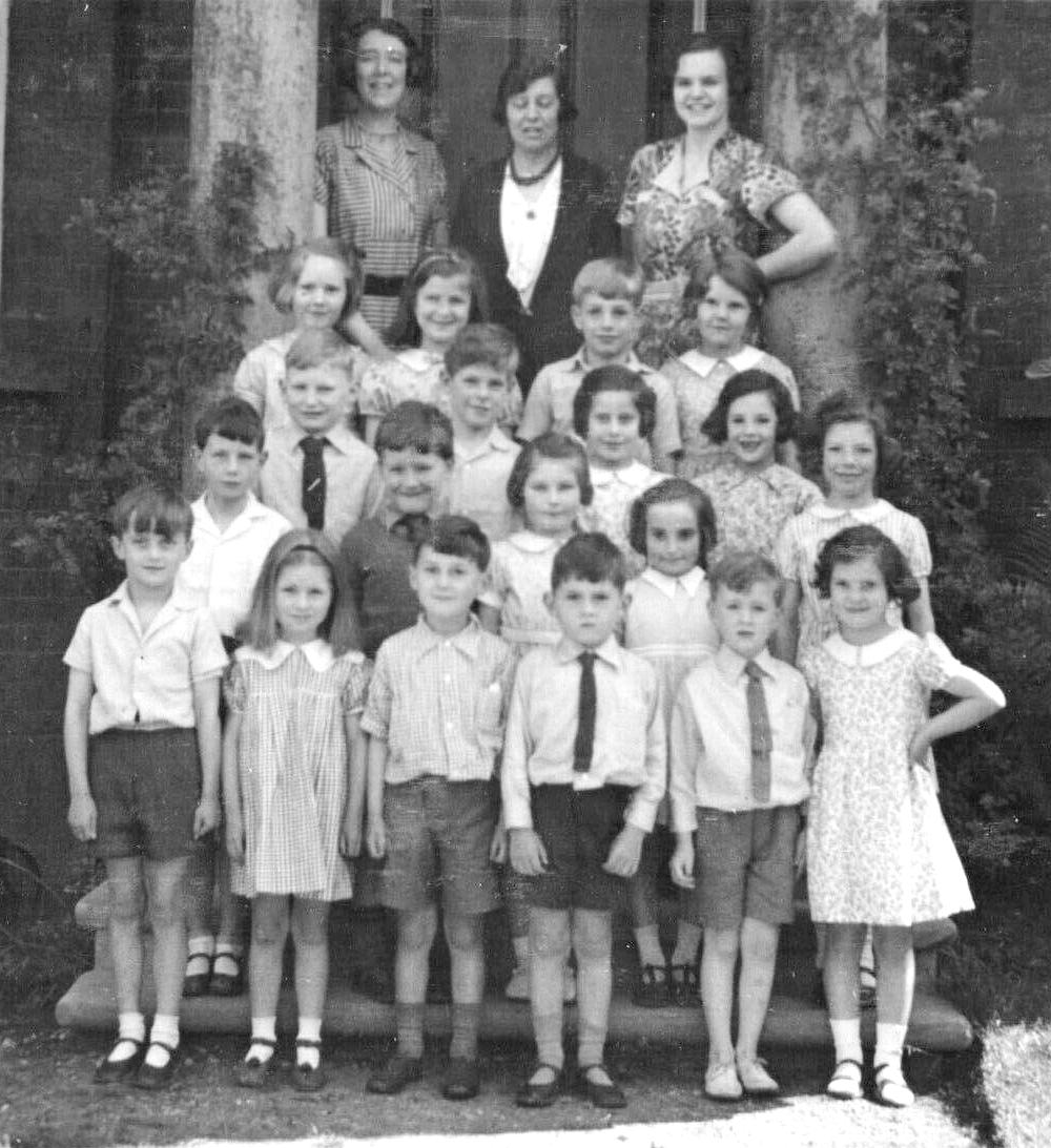 This looks like a small private pre-prep day school with children up to about 5-7 years old. Notice that the children in the back row look a little older than the children in the front. The school is unidentified as The Beeches and is dated June 1937. Actually the photograph looks familiar to us, but we can't find a page we used to create with it. And as the we know the name of the school we are archiving it here. There is a name written on the back--Miss Hamikton-Pott which we assume is the director-owner of the school. There was no uniformm but the boys wearwhite or light-colored shirts and short pants. Manynareblonf skeeves. Sone of the boys wear ties. The girls errar light-colored summer dresses, many print dreses. These were basically standard fashion and school wear at the time. One notable observation is that three of the boys are wearing strap shoees rather than school sandals. By this time strap shoes were becoming less common for boys, especially boys this age. School sandals were common but not strap shoes. Not omly were thry handy for younger children who were still learning to tie shoe laces, but were also popular summer seasonal wear.