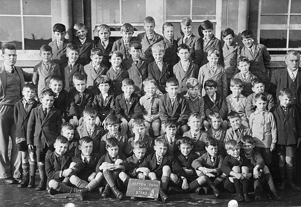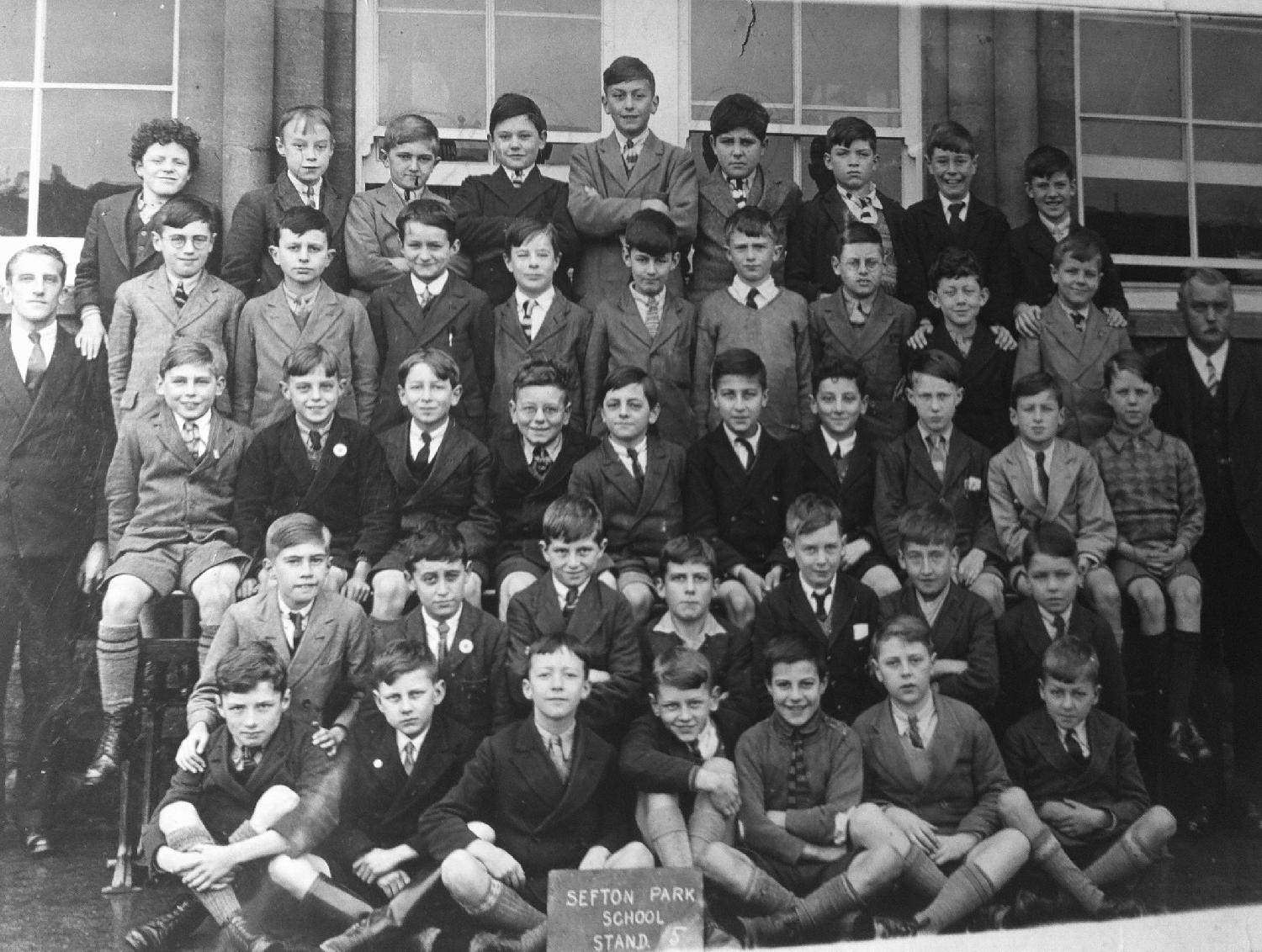 Thanks to the photographer's board, we know that this is the Sefton Park School primary school. We wondered who Sefton was, but apparently it was a Celtuc work meaning marshy area--a place name adooted by the school. The only problem with that is that there were two such schools, one in Bistol and one in Liverpool. We hade no idea which one this was, there was no way to tell. A reader whose grandfather attended the school at about the same time assures us that it was the Bristol School. The school portrai shows a substantial school because there seem to at least two classes for each standard (grade level). We at first thought that it was a girls' school because the first portait we found was an all girls' class. But then we found an all boy's class taken at the same time. So apparerntly this was a coed school with separate boys' and girls' classes. The portrait is undated, but looks to have been taken about 1930. The clothes look fairly modern, but the high-top shoes the boys wear suggest the late-1920s or early-30s. Our reader has attached another potrait of an older form, we think standard 5 taken at about the same time which confirms our dating. He writes, "I'm attaching my photo so you can compare it with the one on your site. My Grandfather was born in 1919 and is about 10 or 11 in the photo so it’s taken in approximately 1929-1930. I think your photo might be a few years after." 【Newton】 There was no uniform, but several of the girls wear school uniforn items including the gym frock. Almost all of the boys wear suits with short pants and knee socks. That was not required, just how boys dressed at the time. But it is notable that boys commonly dressed up for school. Notice that even the boys without suit jackets are wearing ties. We see both single- and double-breasted jackets, but no blazers. The single-breasted jackets seem the most common. Note that at the time, even the younger boys had male teachers.