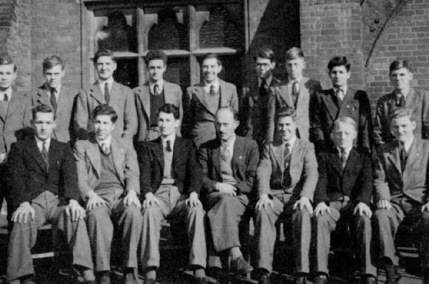 An Old Boy tells us about the Medical form. "This is the 'Medical' form. Our curriculum was steered towards taking our First MB exam for Medical School entry, rather than Higher School Cert. I am second from the right in the front row in my Prefects Jacket. I attended Highgate after being evacuated to America during the War. The boy at the end is the same boy infront of me in the Wellesley College Photo showing fellow evacuees when we wrrived in America in 1940. We had no idea each was destined for the same school back in England."