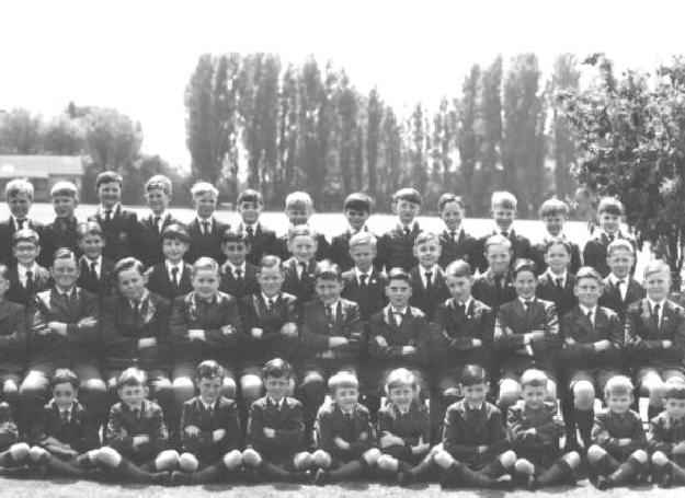 grey socks and black shoes. For the girls it was similar but with dark grey skirts, and I think they wore white socks. Blazers or caps were not worn. Some boys used to wear their cub-scout uniform to school. For us boys, the vexing question was, of course, whether you wore long or short trousers. There were no school rules about this, so it depended largely on the parents. At the age of 11, I transferred to the local secondary school (boys only), where uniform was compulsory. This was similar to the primary school, but with the addition of a black blazer (including the school emblem on the breast pocket), and the tie was now yellow and black. I can’t remember whether shorts were explicitly forbidden,