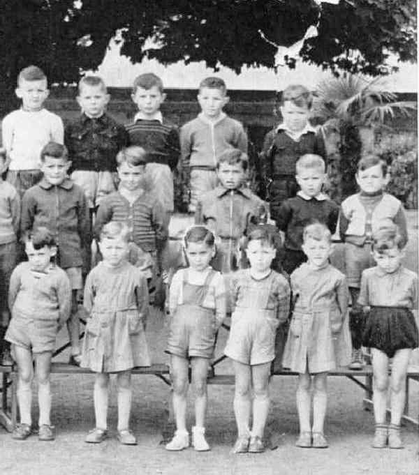 Many of the images we have found showing French boys wearing rompers to school were taken mostly in the 1940s and 50s. This appears to have been the time when rompetrs were most popular in France, although they were also widely worn in the 1930s. We have not yet found examples from schools from 1930s or 60s, although we would guess that they were not unknown in nursery schools. Rompers appear very commonly in the 1940s. A good example is a French Algerian school in 1949. The school photographs here is from the mid-1950s (figure 1). Rompers was not a major school garment , but we do see some boys wearing them. This was mostly boys in Maternelle (nursery school) during mid-century. We do see some beginning primary boys, but not very many.