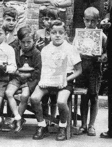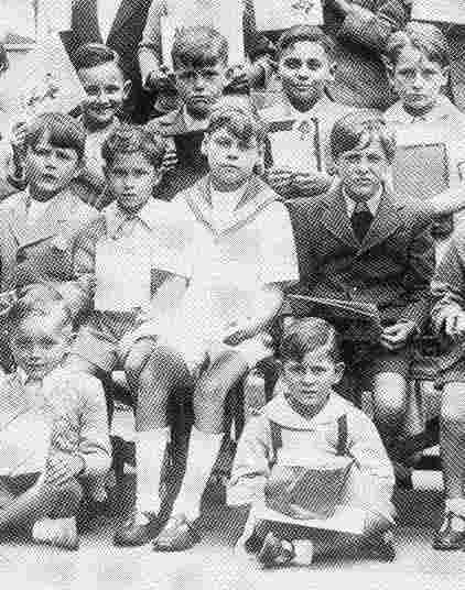 in a romper suit. I think it was one of last times I wore my romper suit. My hair was cut short. About the photo her, I think this ceremony probably happend not in Paris 1947; because in this case many more boys would have worn a more juvenile style. The puffed sleeves were very fashionable for boys up to 8 years at the time. I think it is more likely a country school with two or three classes .