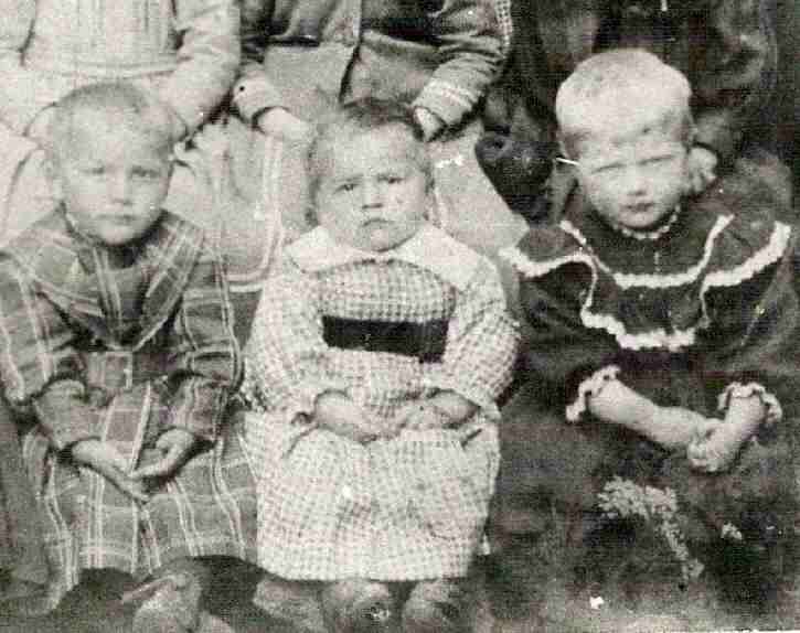 Figure 1.--These children look like boys to us, especially the child at the left and right. Note the belt on the boy at the left. Smocks were sometimes worn with belts. We are unsure if these children are wearing dresses or smocks. Notice one is done in the sailor style. |