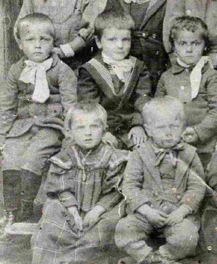 Figure 1.--It is a little difficult to discern who is a boy and who is a girl. Most of the children with short hair look like boys to us. Even the ones wearing smocks/dresses. We assume that these are boys who have not yet been breeched. They look about 5 years old, except for one evenhyounger looking boy. Short hair was clearly the style for boys, although not the extremely close-cropped style we have seen at some schools. |