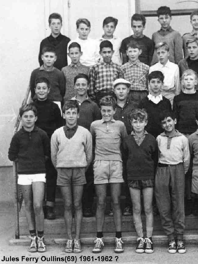 Here we see the Ecole Jules Ferry. Oullins is the city in France where it was located. Oullins is a small town near Lyon. The number "69" appears represents the District (département) of Rhone. We have one available image from the school. It was clearly a boys' school, but we know virtully nothing about the school. The image we have looks like the older boys at the school. They look to be about 12-13 years old. Curiously they mostly wear tennis shoes. We have noted many French boys wearing tennis shoes, but never so many in a single class. The owner of the photograph guesses it was taken in 1961-62.