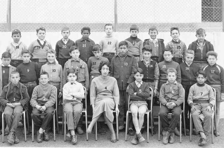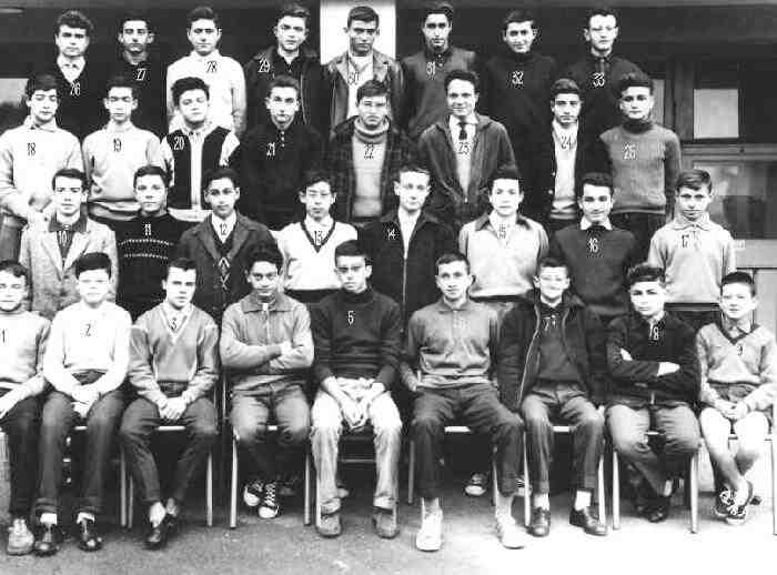 We see the 5A9 class in the previous page at the Lycee Lamoriciere in 1958. The boys all wear casual clothes. It looks to be chilly and the boys are mostly wearing heavy sweaters. None of the boys are wearing ties, but most have buttoned their collars. One boy looks to be wearing a blazer. The boys seem to almost be wearing long pants, although one boy seems to be wearing shorts. I'm not sure if seasonality is a factor. We notice another class in the same year. Here the boys are a 3 eme class (figure 1). They are the boys in the middle of the school. As in the other image, the boys also wear casual jackets and sweaters. The boys wear long pants, with one exception. We can also view the younger boys.