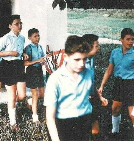 We believe this is a French school, although we were not sure. All we have is a photograph probably taken in the 1950s. The photograph here was apparently taken in 1956 (figure 1). There is a basic uniform so it may be a Catholic school. The uniform appears to be blue-green shirts, black or dark blue short pants, and white kneesocks.