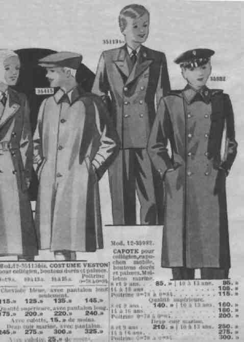 Here is the text of the magazine advertisments for French schools clothes. These garments would have been worn by boys in private Catholic colleges. I'm not positive yet what kind of ublications they were.