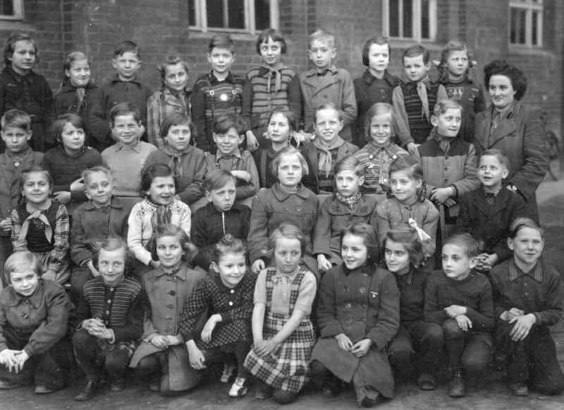 We do not immediately see differences between schoolwear in East and West Germany after the end of World War II and the beginning of the occupation. Nor do we have a lot of information on DDR schoolwear. The German Democratic Republic (DDR) did not immediately institute school uniforms. It is often difficult to destinguish between East and West German photographs when the images are unidentified. One indicator when uniforms are not worn is the red Young Pioneer scarves the students in the DDR wore. German school children had never worn uniforms before. This is interesting as the model for the DDR was the USSR, and Soviet children did have to wear school uniforms. Soviet proconsuls controlled every aspect of German life. The lack of school uniforms in the DDR probably reflects the deep-seated rejection of German militarism and ideas (such as uniforms) associated with it. Eventually school uniforms were adopted, but I am not sure precisely when, apparently, about 1960. This was of course one more step in accepting the Soviet model in economoc and social areas. School uniforms were a well-established aspect of Soviet education.