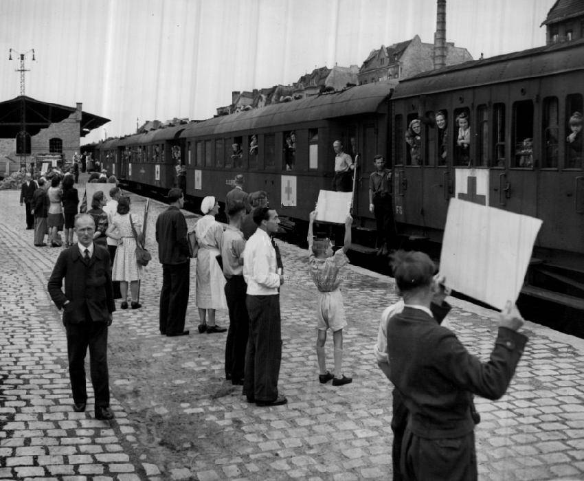 other major cities were immense piles of rubbles. Much of the damage was done by the Allied bombers, but a major battle was fought in Berlin and there was fighting in other cities as well. All those ruins we see were primarily apartment buildings that had been destroyed. Miraculously, the German people mostly survived the bombing because of the effective NAZI civil defense system. The buildings did not. This left a huge number of families homeless. A vast swath of dwellings in the hear of virtually every German city were destroyed or damaged beyond repair. The damage was of course the greatest in the cities, the very areas from which children were evacuated. Many parents both military or civilians were dead or injured. Many fathers were in POW camps. Jobs were almost nonexistent. Thus even if the parents had survived the War, the homes were gone and the ability to support a family was gone. Thus many parents parents, especially single mothers were in no position to care for their children. And combined with this, there was no way to get the children home. Few Germans had cars, and fewer still had cars that survived the War. Obtaining gas was virtually impossible. The children had been primarily evacuated by rail. And Germany's renowned rail system was wrecked. Destroying Germany's rail system, including locomotives, rolling stock, bridges, and stations had been a priority of the Allied strategic bombing campaign in an effort to destroy the NAZI war economy. And they largely succeeded. Thus even if a home was in tact, there was no way to get the Germany home immediately after the War. The U.S. Military Government and the Red Cross played a major role in getting the children home. It would be more then a year before all the evacuated children were able to get home.