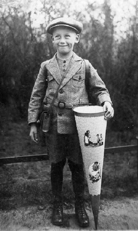 Flat caps were a major style in America for three decades, but it as far as we can tell, not a major style in Germany for school boys. I think it was more a working man's cap. We see a few boys wearing them, but as far as we can tell, flat caps were not very common school headwear. The examples we have seen are from the 1920s. We notice a boy just starting school wearing one. We are ot sure about the age conventions. We tend to have more first year portraits because it was such a common convention to take a child's portrait wgen they first began school.