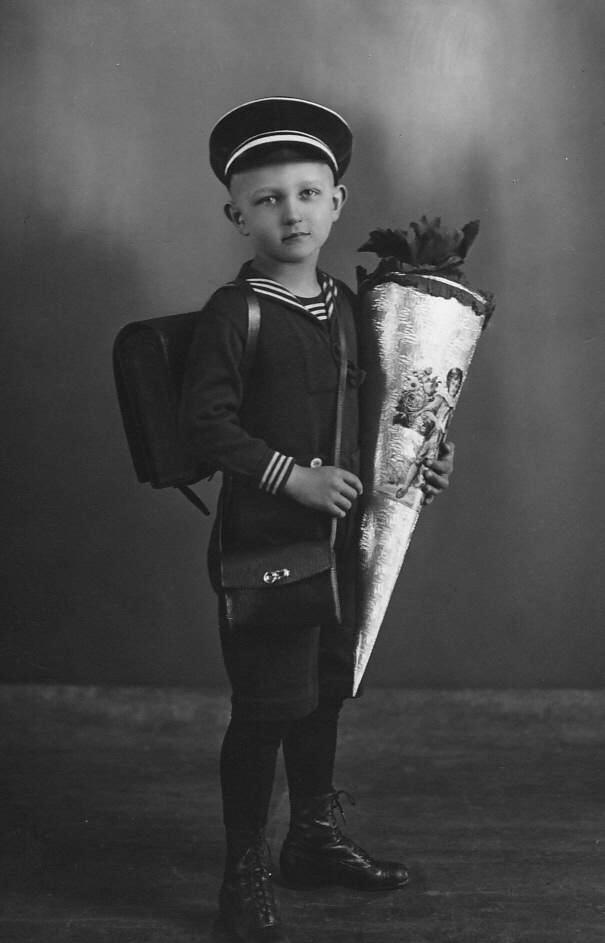 We see numerous portraits abd snapshots of German boys wearing these military-stle caps with school clothes. Younger boys wore these peaked military-tyle caps with a wide variety of outfits. Sailor suits were very popular, boy were just one of the many styles of outfits worn. The caps for these younger boys were just a popular style, not a cap the school required a boy to wear. As a result the cap had no real relastionship to the outfit the boys wore. The cap was more of an army style while many of the boys wore sailor suits. The resulting look is destinctively German, although some Scandinavian boys seem to also worn similsr caps and outfits. Older boys attending secondaty schools commonly wore them with suits. And in this case they were specufic caps designated by the scholls for the boys to wear. German boys did not wear school uniforms, but these caps served as a kind of school uniform at specific schools, mostly secondary schools.