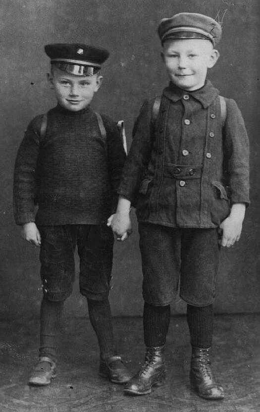 Some schools, but not all seem to have had rules about these caps. These military styled caps were such a standard style that they were worn even when not required by a school. This was the case especially at primary schools. So we see boys wearing caps with stylistic and color differences. Thus at these schools the military peaked cap was just a popular cap styles rather than a uniform cap required by schools. German boys have not worn uniforms like boys in England. Some schools, however,