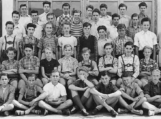 Lederhosen were primarily worn to school by boys in primary school, but some older boys also wore them in secondary schools. Some younger teenagers wore them to school, but mostly it was boys in primary school. Photographs of German school classes show lederhosen most commonly worn by the younger boys. We have noted, however, some classs of older boys in primary school or even younger boys in secondary school with boys wearing lederhosen. This changed over time. Even by the early 1970s yonger teenagers were weraring lederhosen to school, but the popularity of lederhosen declined substantially during the 1970s--especially for older boys.