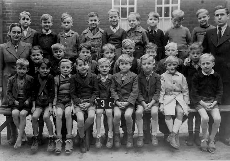 This class of German primary school pupils was taken in 1949 (figure 1). We do not know where it was located. We think it may be in East Germany, but we are not positive. Note that even though it is chilly, the boys do not wear long stockings. The #c suggests the third year of primary school which means the boys are about 8 years old.