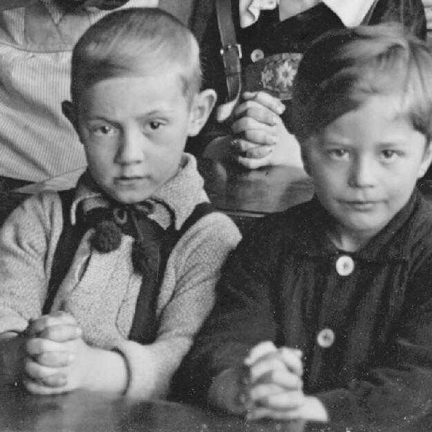 ![]() Figure 1.-- At least one boy wears lederhosen. He is the only boy I note wearing lederhosen. Lederhosen were at one time a regional garment, but by the 1930s were more widely worn. Still they were most common in Bavaria. Image courtesy of the MD collection. |